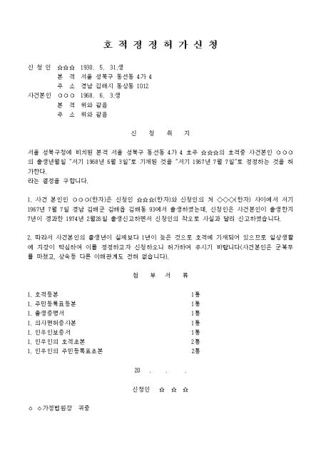1970년대 이전에는 출생신고가 이루어지지 않았고 영아사망률이 높아 아이가 태어난 지 2~3년이 지나야 출생신고를 하는 경우가 많았다. 그것은 또한 일어났습니다. 수기로 출생신고를 하신 담당자의 착오로 실제 생년월일이 서류상의 생년월일과 다른 경우가 있습니다. 이렇게 해서 실제 생일이 서류와 다르면 원래 나이보다 빨리 은퇴하고, 의료보험은 원래 나이보다 늦게 된다. 혜택과 연금을 받는 것은 개인의 이익을 심각하게 손상시키는 상황으로 이어질 수 있습니다. 가족관계등록부의 생년월일이 주민등록등본과 다른 경우